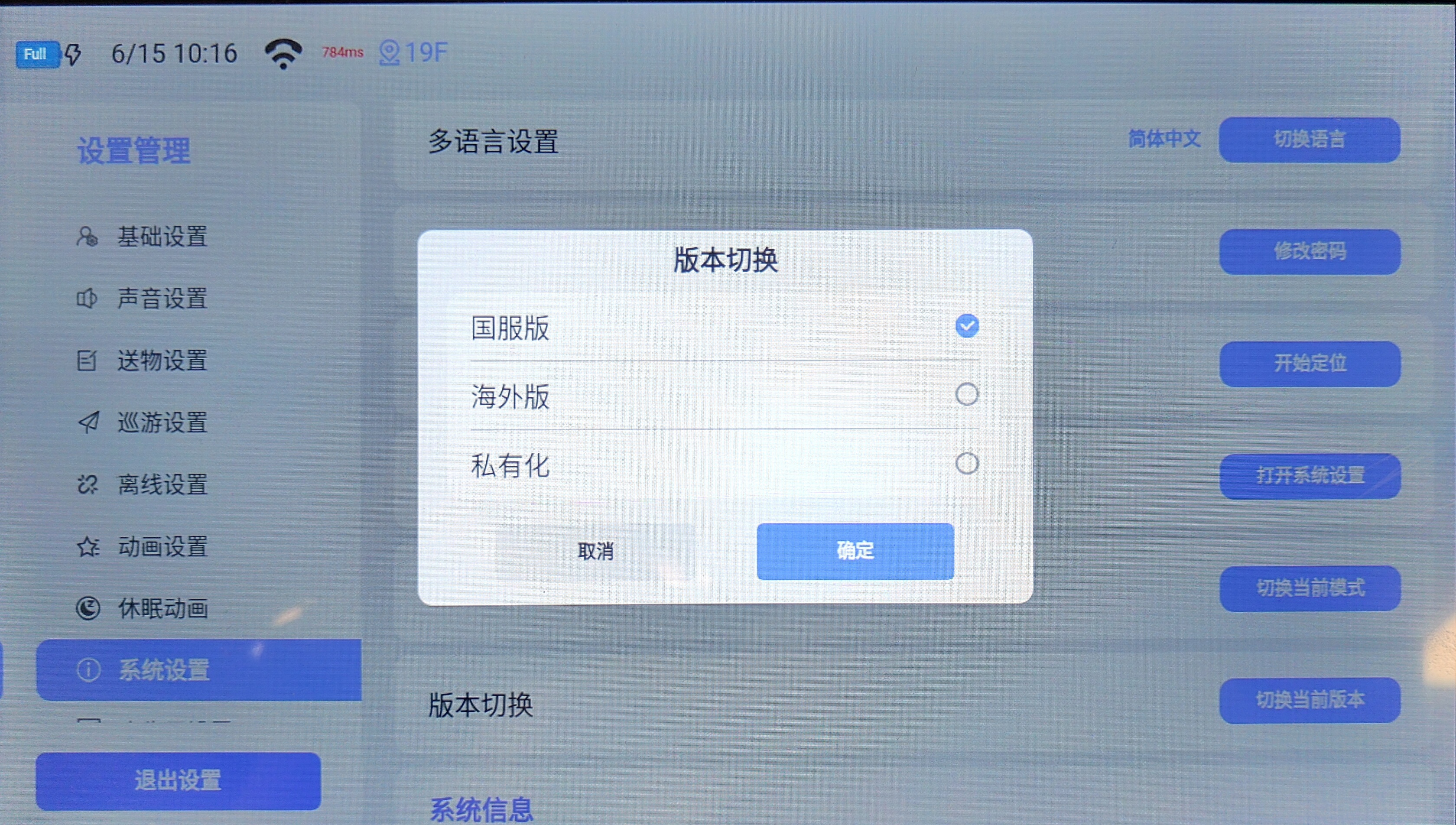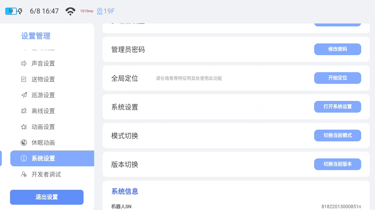 WLAN:可通过此处链接现场的WIFI,机器人本体有个国内的4G卡,如现场网络不好可以使用WIFI。