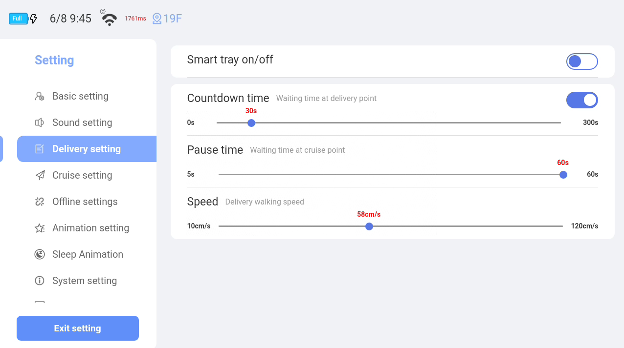 ② Countdown time: delivery pause time, robot walking speed, etc.